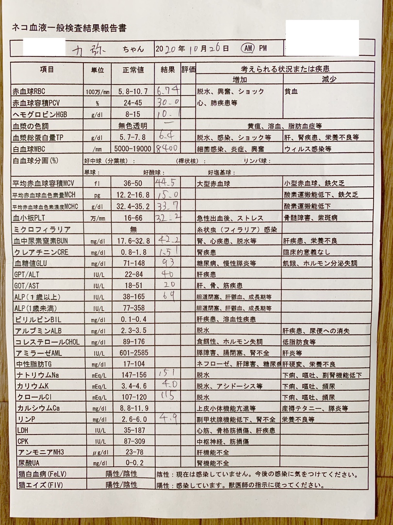 2020-10-26-Monりきたんの腎臓の数値が悪くなっていました。