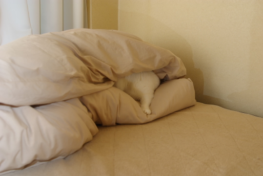 起きたてホカホカのお布団も、猫さんの為にそのまま…とかw