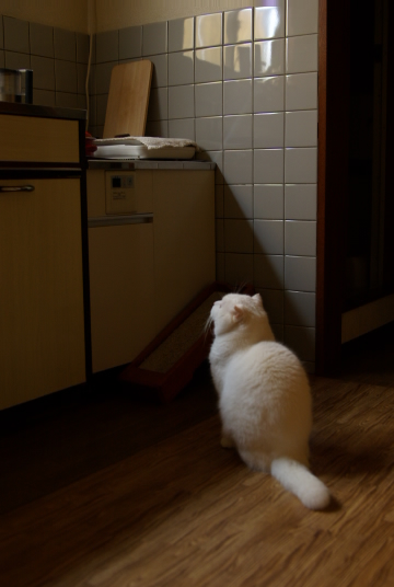 台所に置いてあるオリーブオイルを見ていました(笑)