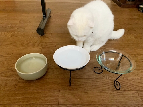 ヘルスウォーターシリーズ、ご飯を食べていたお皿(陶器?磁器?)、いつものガラス皿