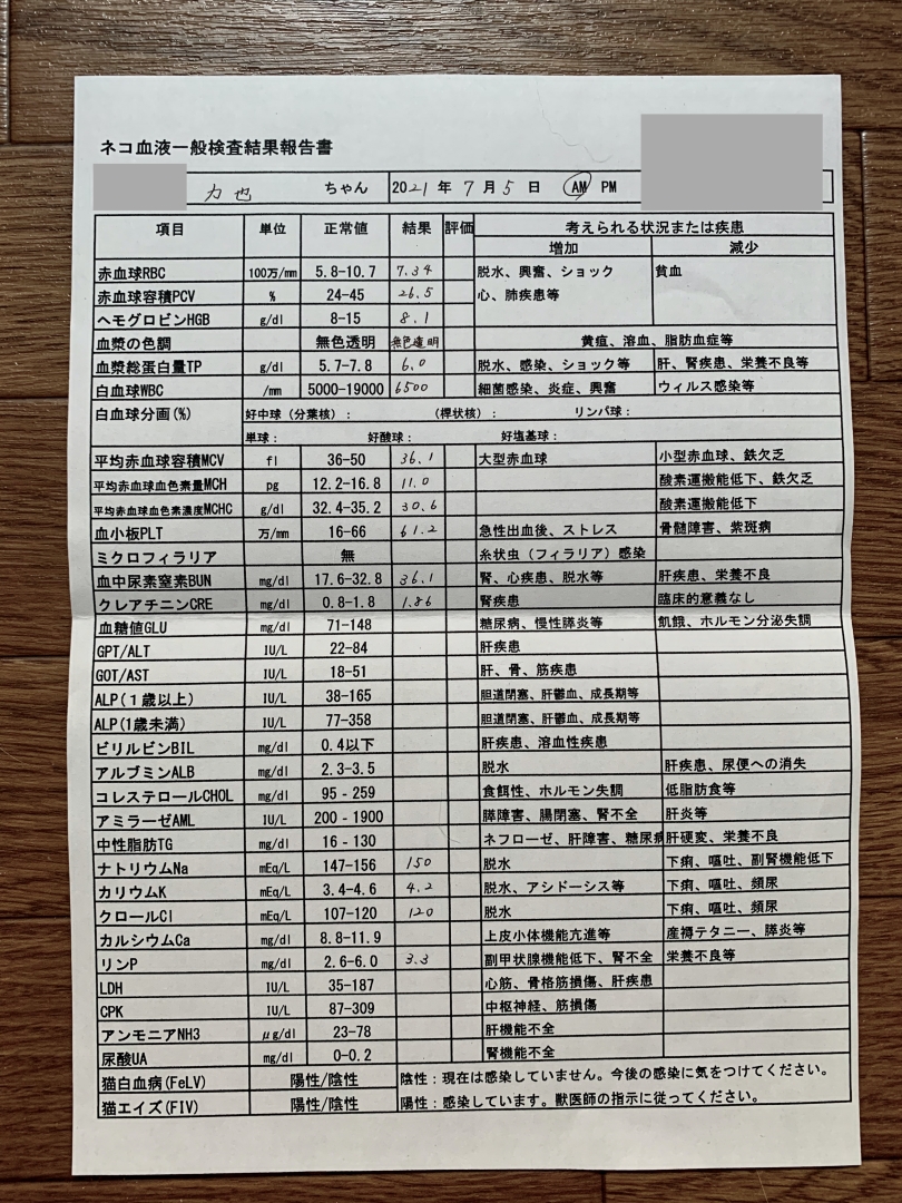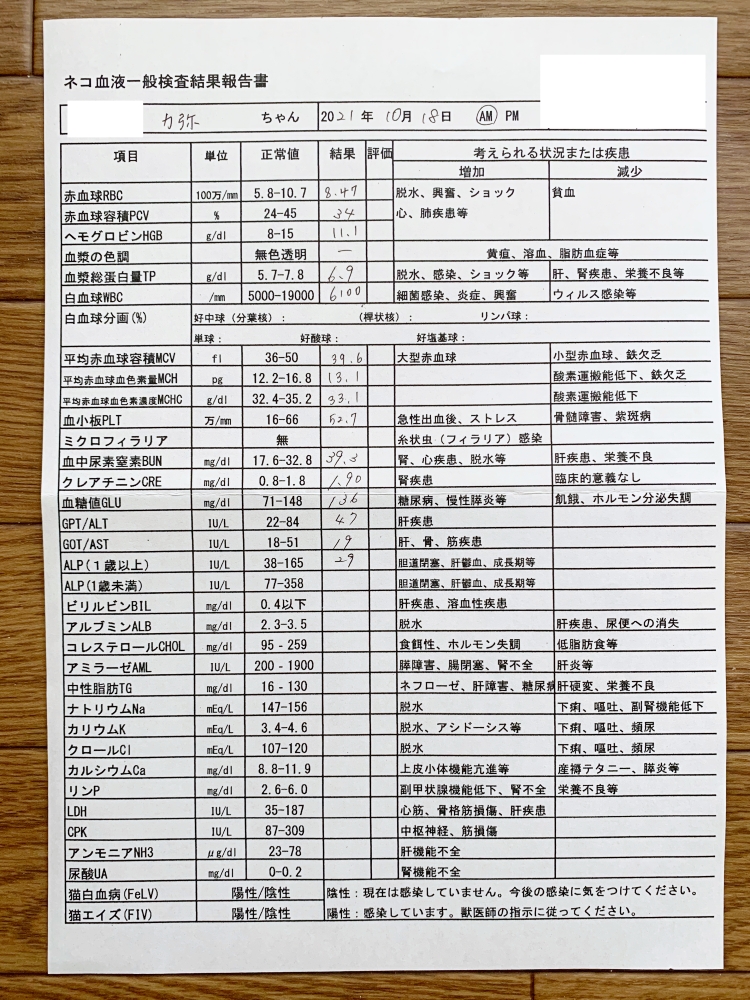 腎臓の排泄機能が落ちているのでは、とのこと。