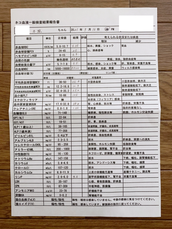 りきたんの貧血は、身体が適応してくるので、本人がしんどいわけではないそうです。