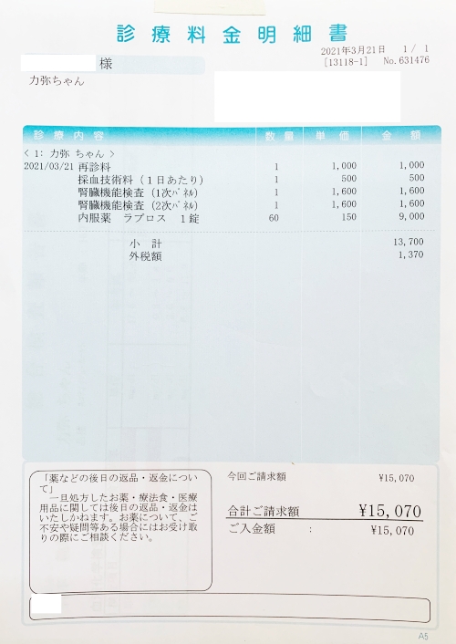 ラプロスは腎臓の数値を下げるお薬ではなく、元気さとか食欲とかに影響があるそうです。