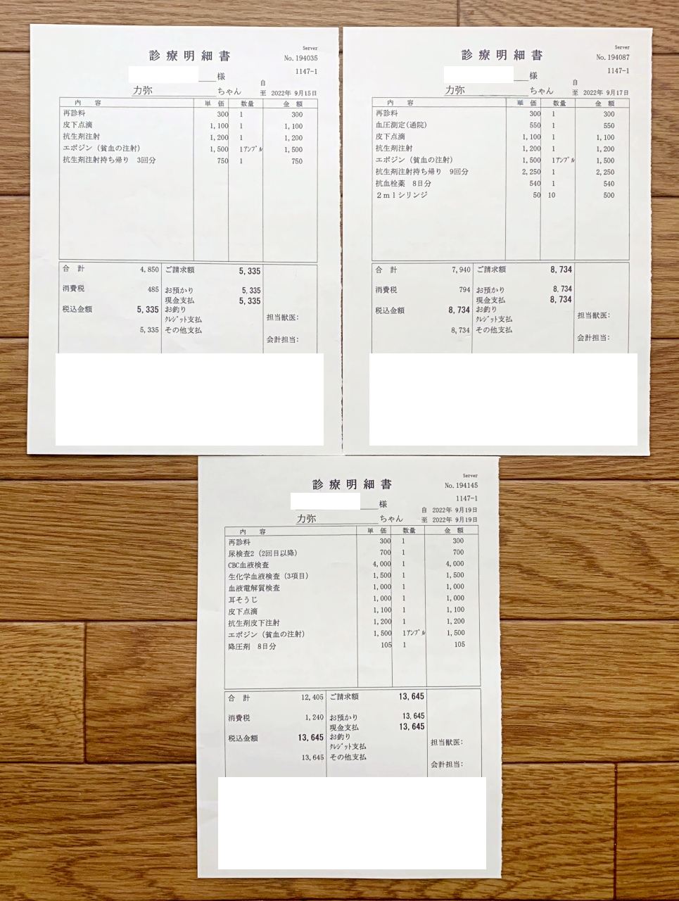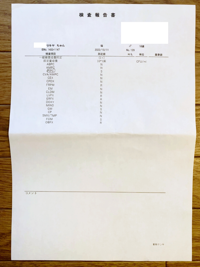 ・菌はいないが、赤血球がまだ出ているので、抗生剤の注射をあと1週間続ける。