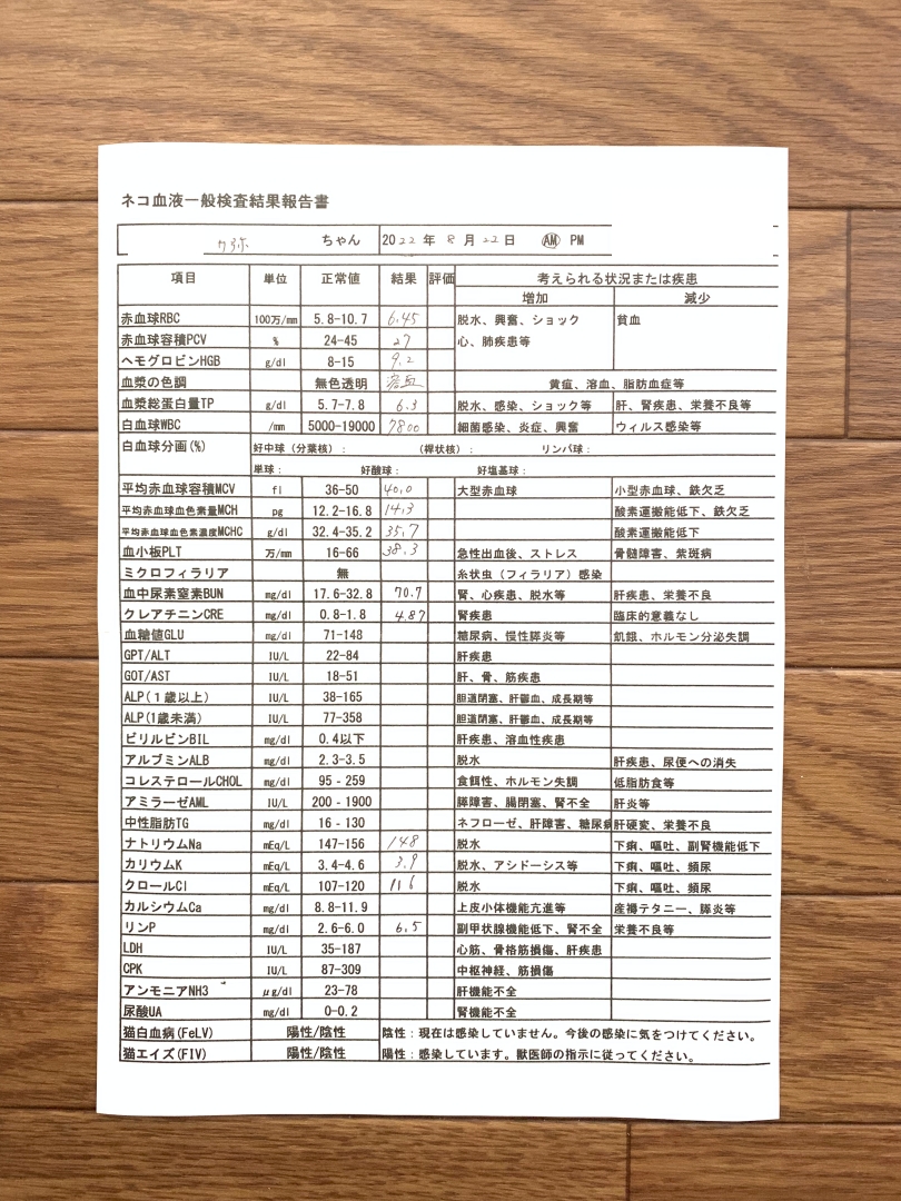 ・腎臓の数値が上がる。点滴は変わらず週2で。