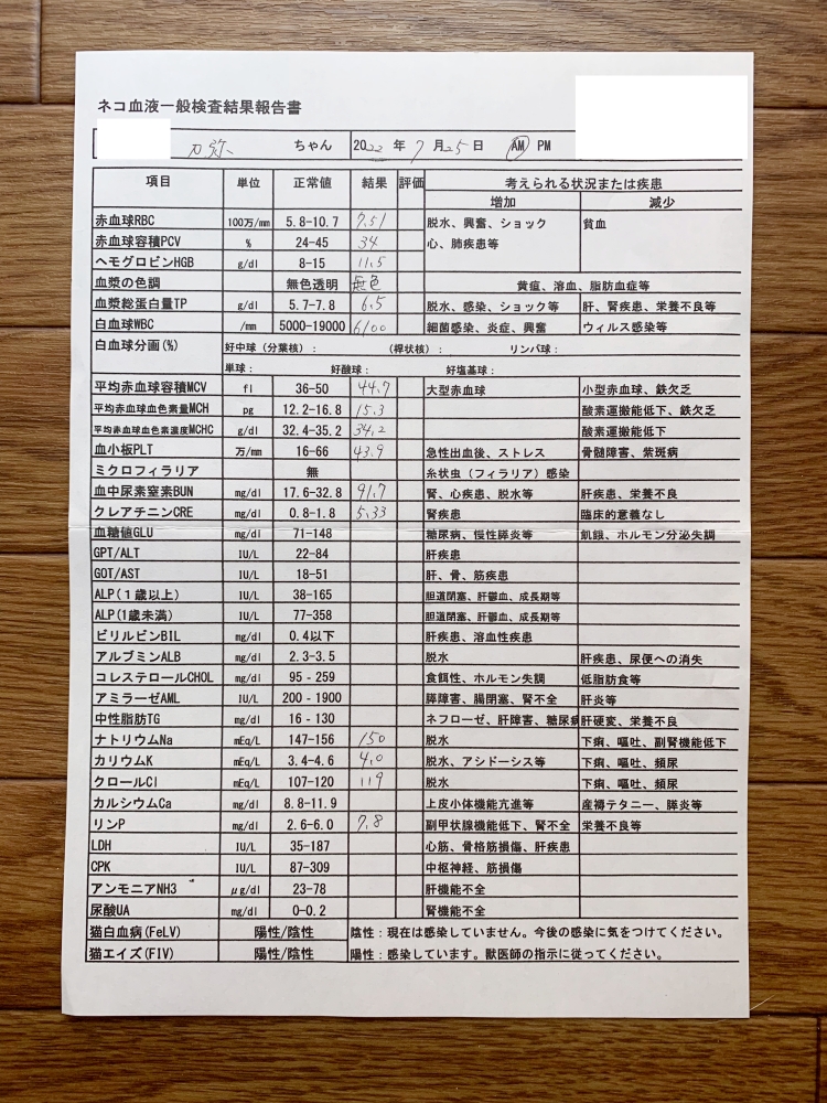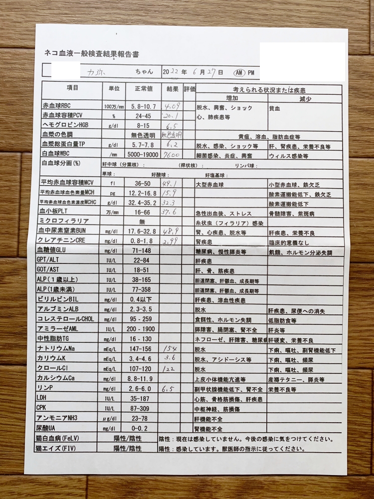 りきたん、腎臓の数値がかなり悪くなっていました。