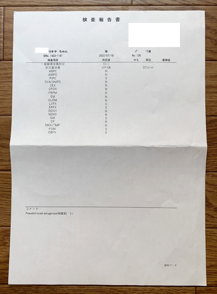 尿検査、まだ菌がいたので、もう一度外注検査に出しました。