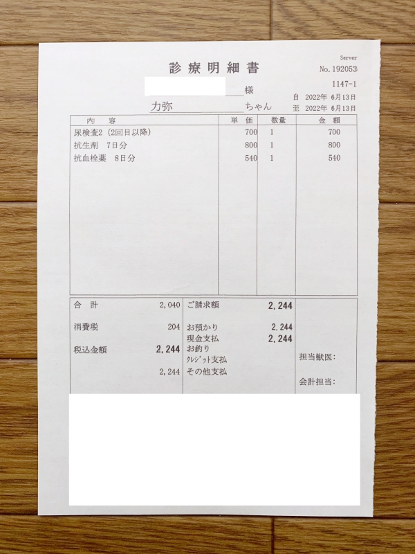 2週間後、耳と尿検査を診てもらいます。