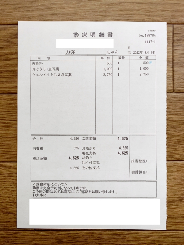 右のお耳がまた汚れていて、掃除と点耳薬も。