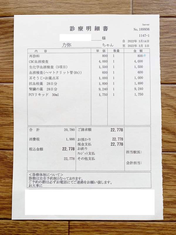 来週、血液検査時に、経過(お尻、右耳)を見てもらいます。