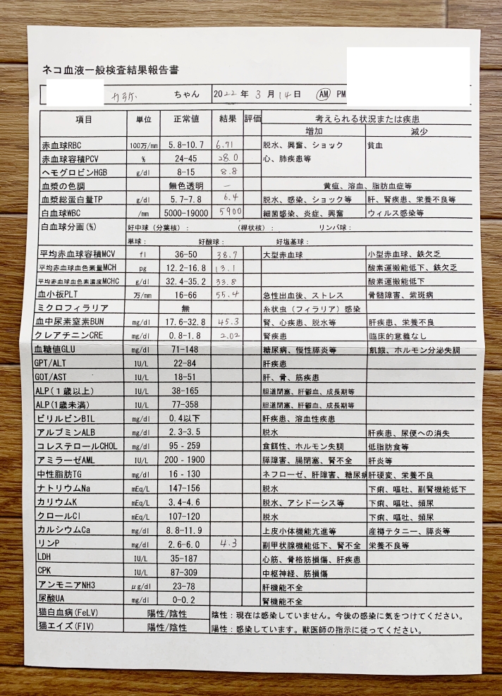 PCV28.0、BUN45.3、CRE2.02、P4.3