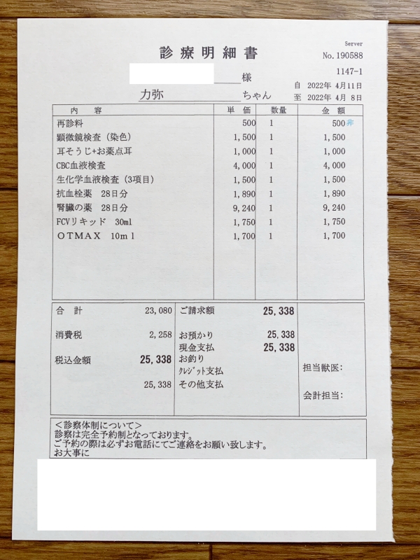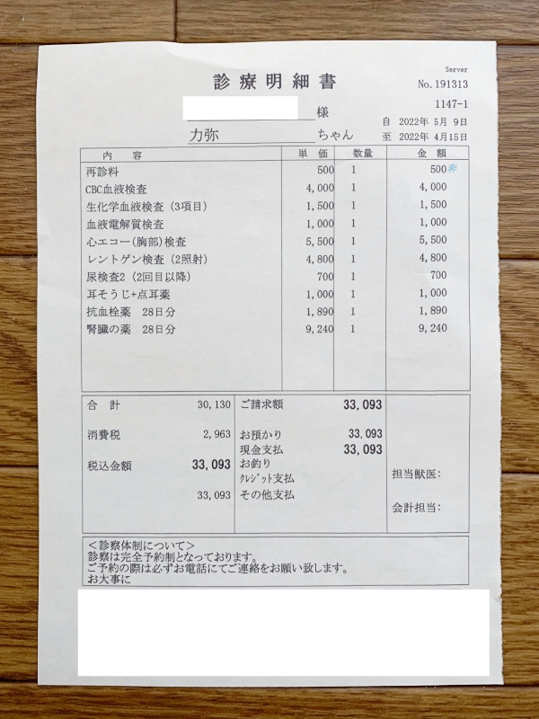 レントゲンと血液検査で大きな変化がなかったので、今回はなし。