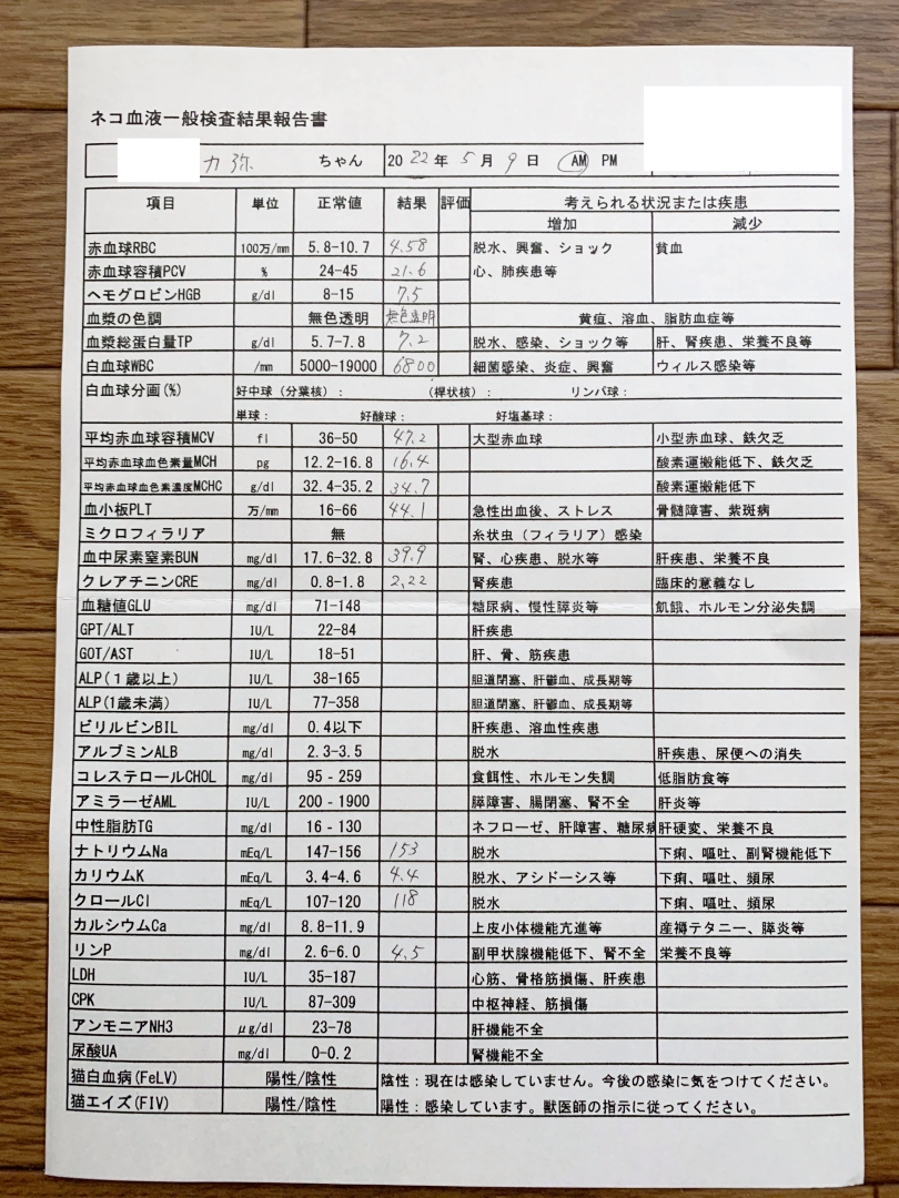 腎臓の数値が少し上がる。次回ぐらいからリン吸着剤を使うか?