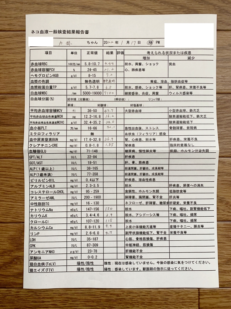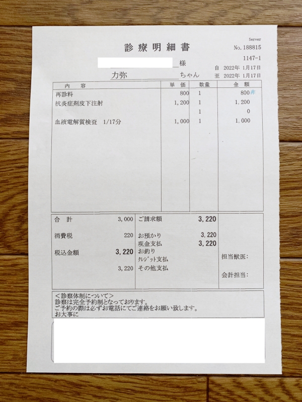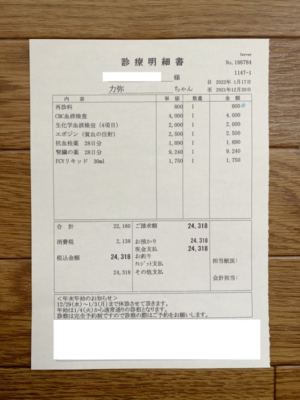 1:FCVリキッドは、動物病院の先生から、減らしていいとのこと。(1月17日受診時)
