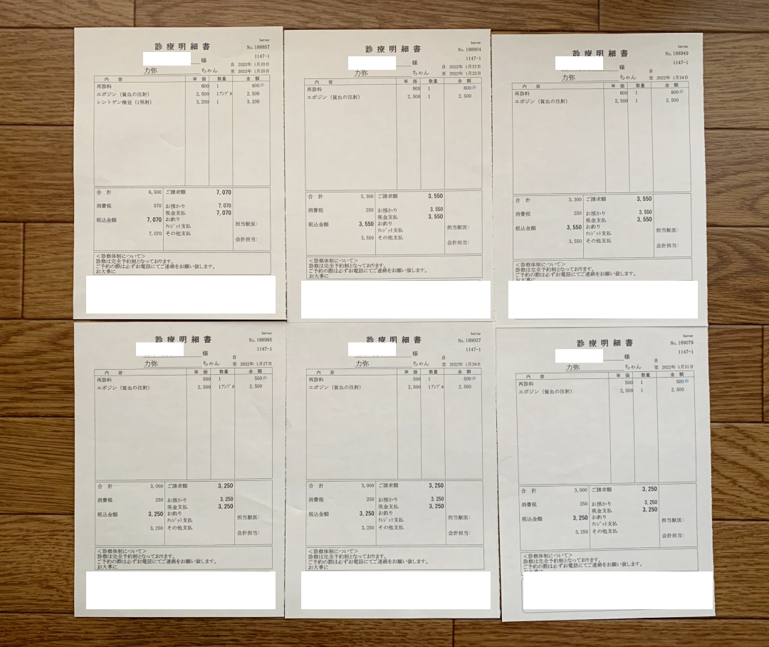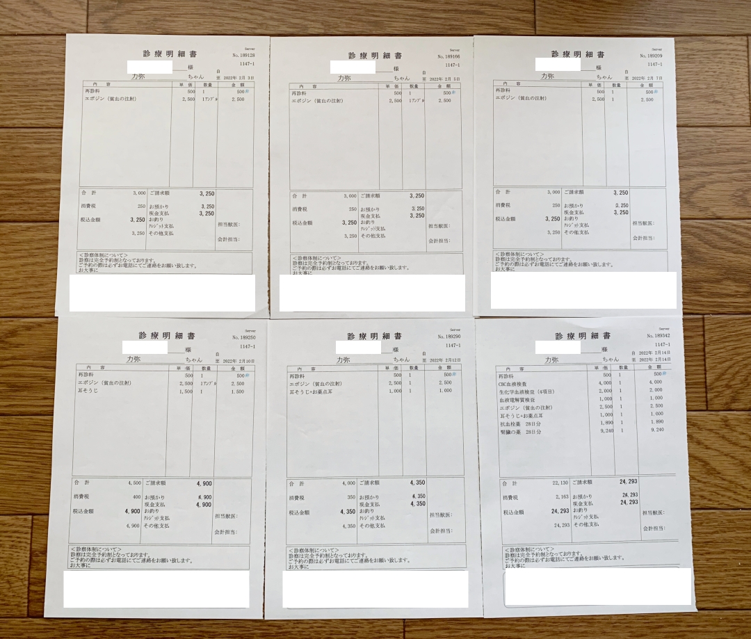 貧血が進行していたので、週3の注射が始まります。