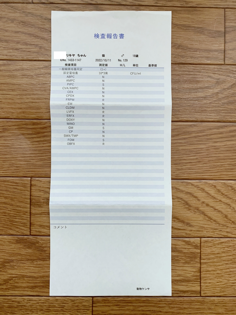 見た目はキレイなんだけど、やっぱり膀胱炎は治っていないようです。