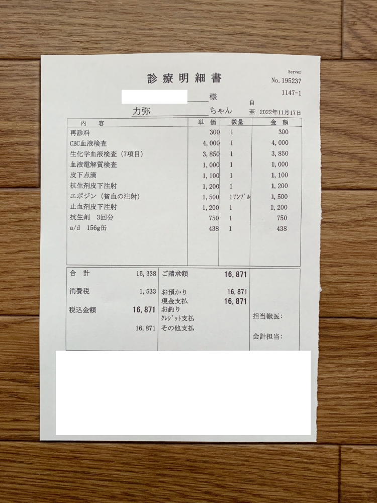 ・貧血、進行しているので、造血剤の注射を始める。(いつもより進行が早い、血尿の影響か?)